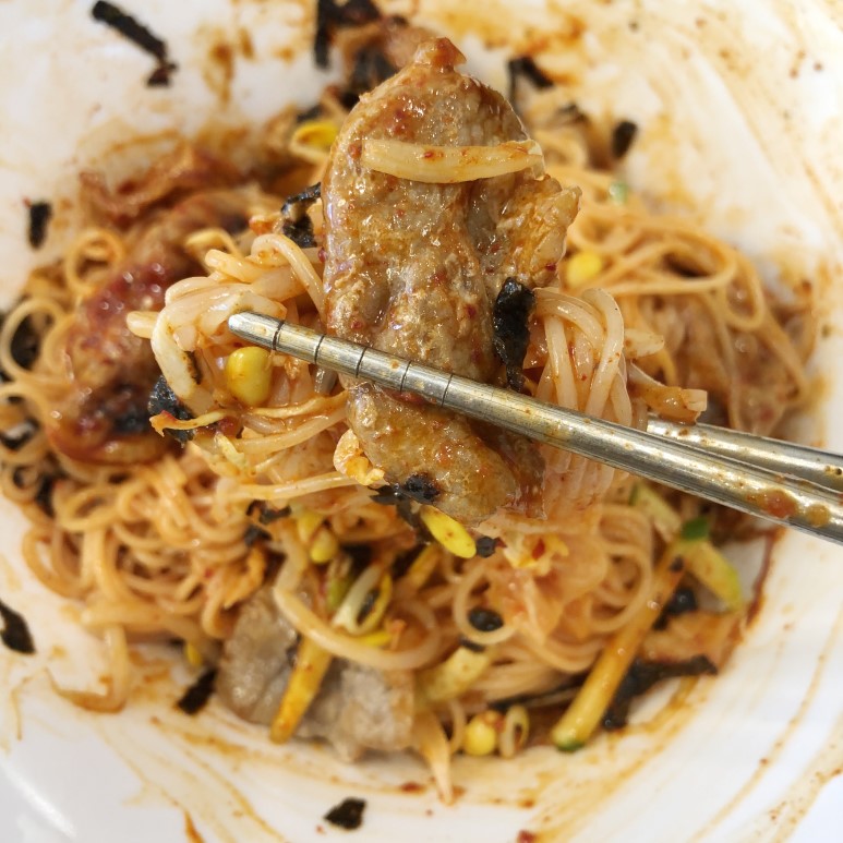 오늘의 1일 1식은 ‘혼짬뽕+밥말이’. 실비김치를 올려서 마지막 국물까지 듬뿍 올려서