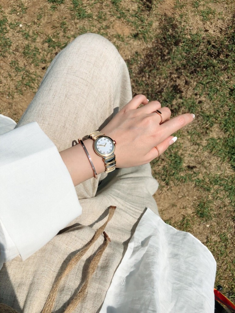 단단하고 쉐입이 탄탄하여 있는 전체 뱅글은 손목에 맞지 않아 떠있는 느낌이 들고 사이즈 조절이 어려운 반면 하프 뱅글은 반 체인으로 되어 있어 착용감도 편하며 원하는 부위에 고리를 걸 수 있어 길이 조절이 쉽게 되어 좋다 🙂