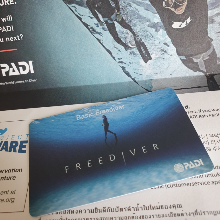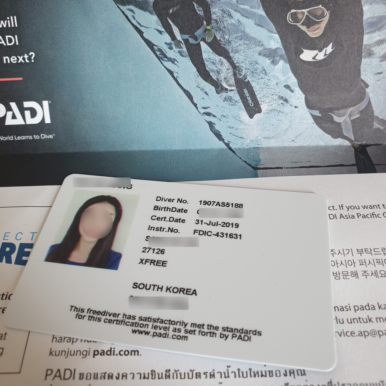 2019년도에 땄던 PADI 공식 자격증 레벨은 Basic Freediver.종류는 베이직 프리이다.이버-프리다이버-어드밴스드 프리다이버 마스터프리다이버 순이다.
