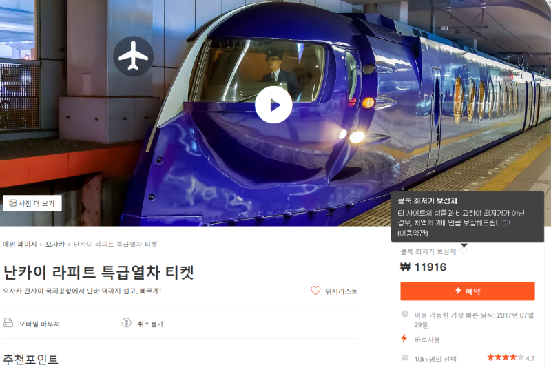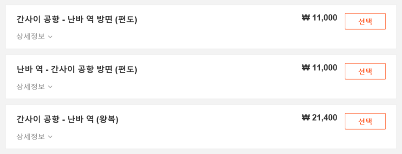 보통 난바역에 자주 갑니다만, 이 때는 간사이 공항의 라피트가 가장 빠르고 편리한 수단입니다.가격대는 다른 교통에 비해 조금 비싼 편이지만 충분히 몇 천원 정도는 아깝지 않을 정도로 좋거든요.