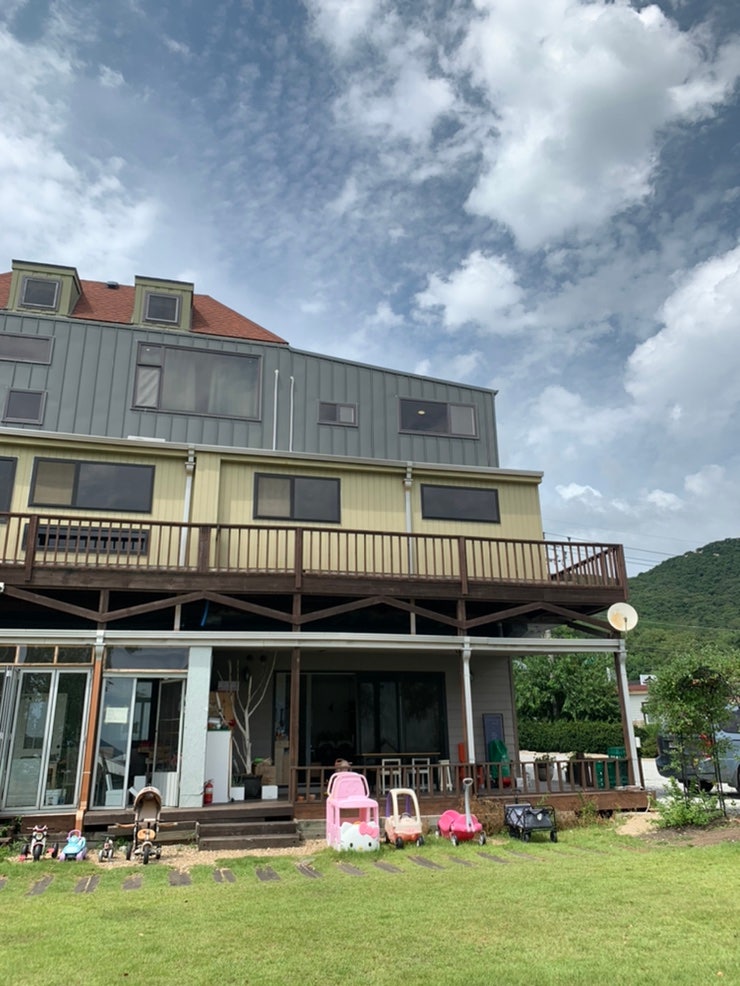 아셀펜션 오션동 숙소 아셀펜션이 또 좋은 점이…넓다~~~ 마당이 있다는 것, 아이들이 놀 수 있도록 각종 놀이기구와 놀이터처럼 마당을 꾸며 놓았고 토리는 오자마자 즐거웠던 정원은 2시부터 이용 가능하다.