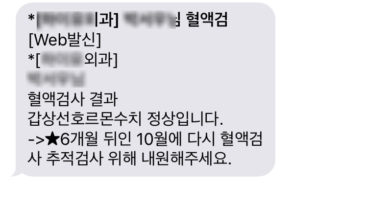 갑상선암이나 기능 저하는 남성보다 여성에게 많다고 합니다.저는 외과에 왔지만, 피검사는 일반 내과에서도 해 준다고 합니다.