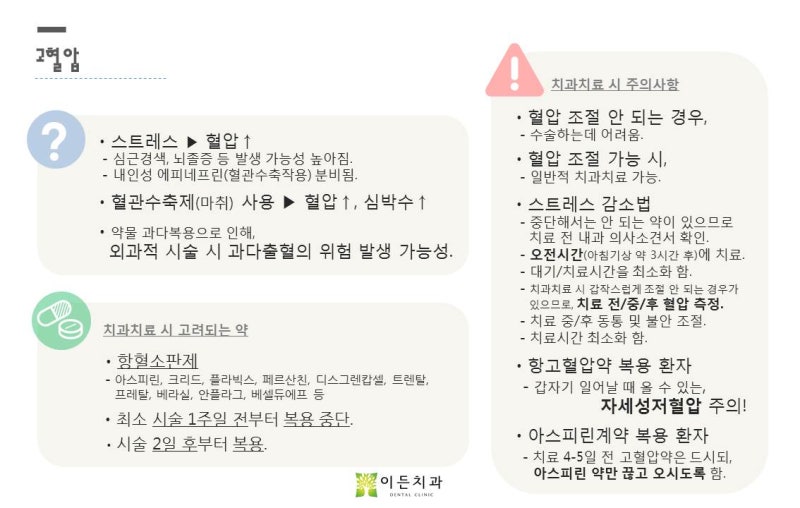고혈압 환자가 치과 치료를 받을 때 주의해야 할 것은?