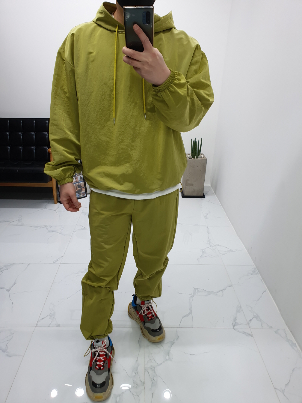 조거 팬츠, 와이드 맨투맨 팬츠가 함께 나와서 세트로 구성된 오버핏 후드 티셔츠에 착용했는데 전혀 다른 느낌이 듭니다.