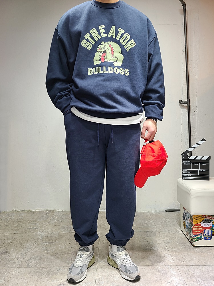 헤비 쭈리 맨투맨과 와이드 스웨트 팬츠입니다.