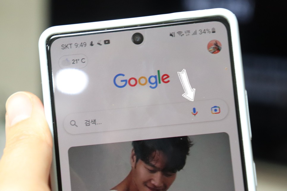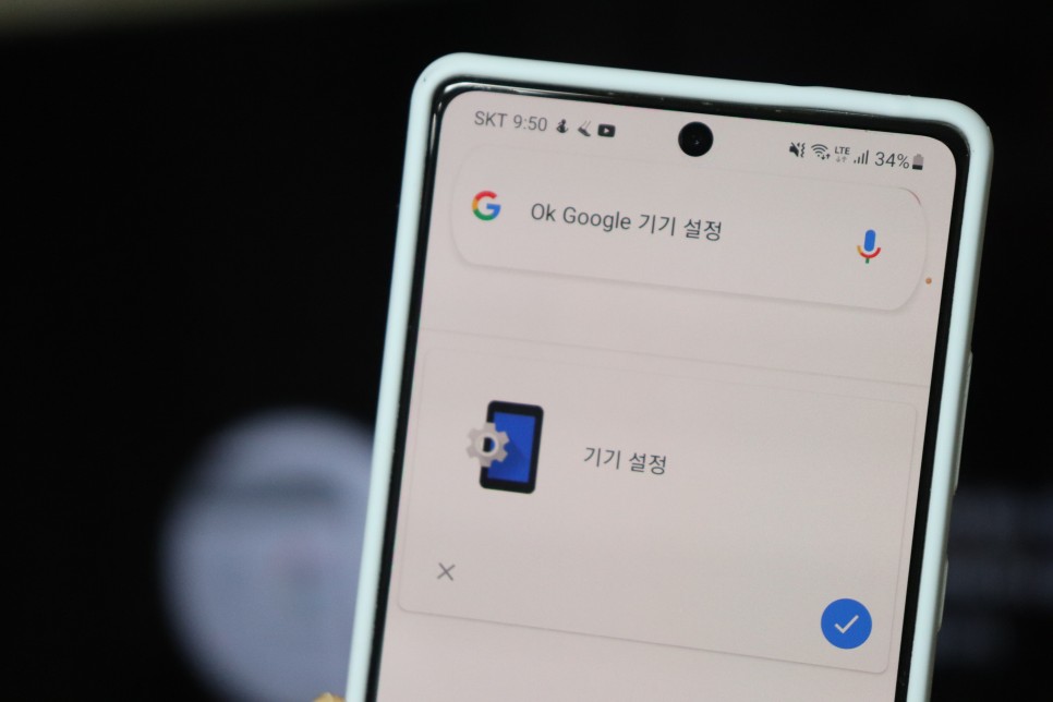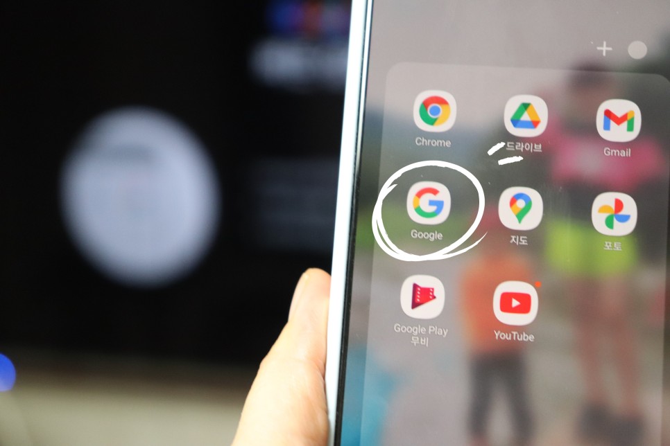 TV화면에 나와있는 설명대로 진행이 되는데 우선 휴대폰에서 구글앱을 찾아서 실행시키고 검색창에서 OK Google, 기기설정이라고 검색하세요.마이크 버튼 누르고 얘기해도 돼요