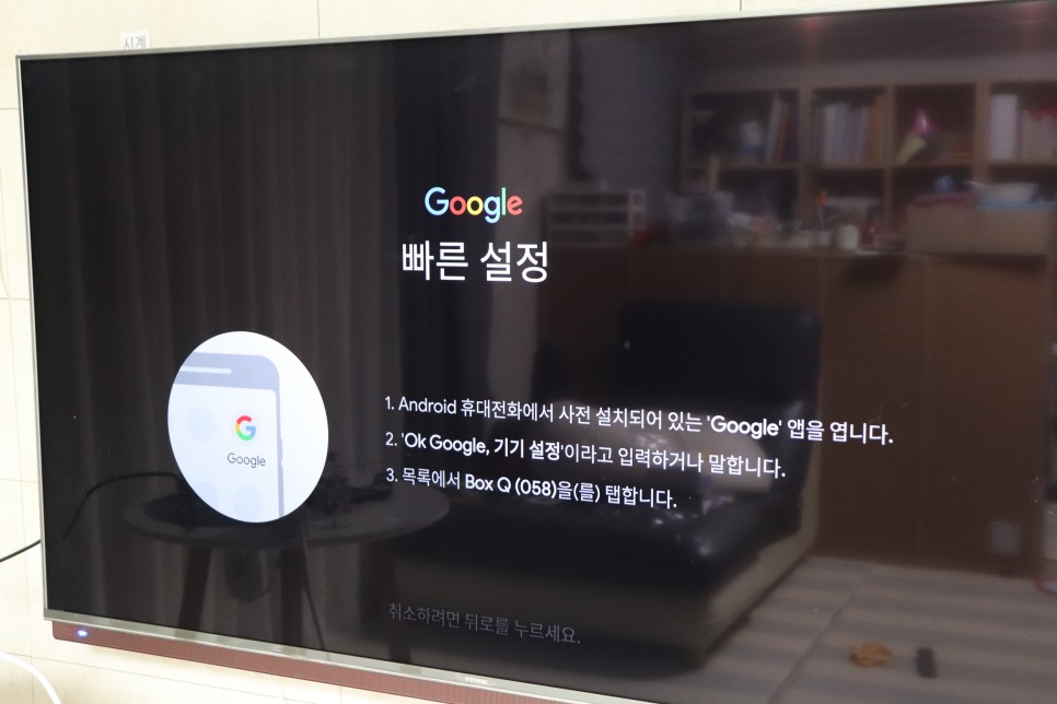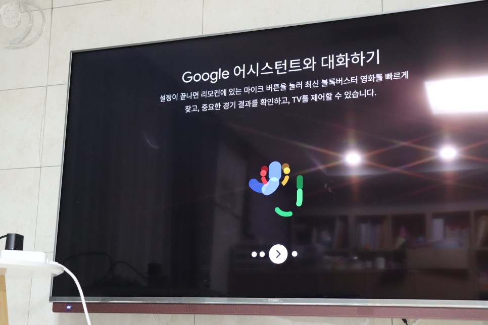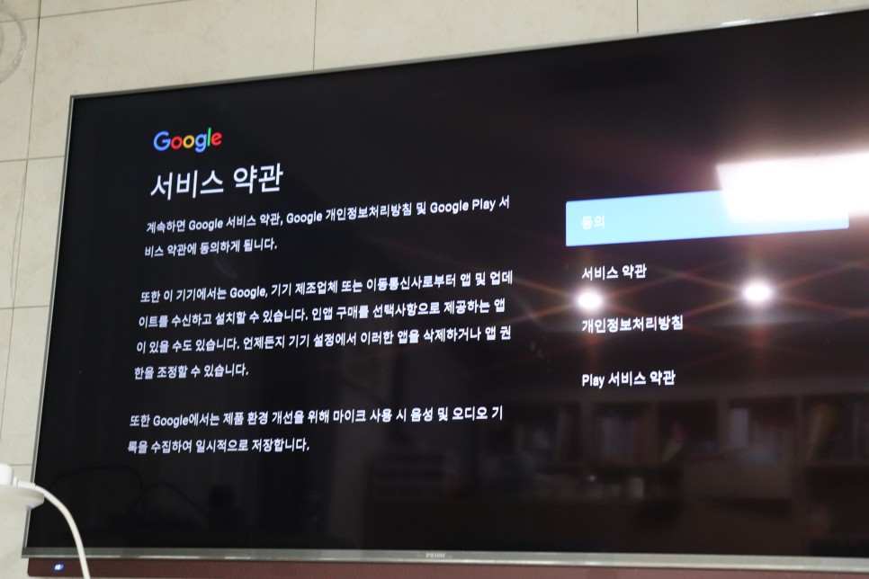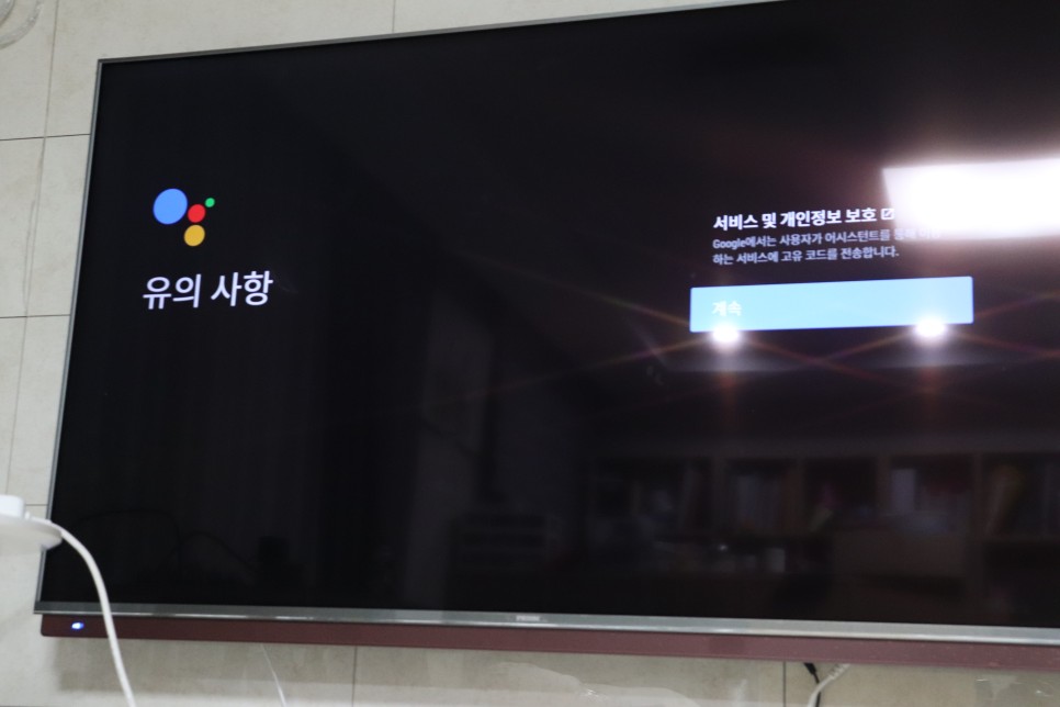 별거 없이 구글 아 카운트 연결하면 끝!그 후에는 리모컨으로 설정을 하는데 계정 연결 후 업데이트를 해서 초기 연결 시간이 좀 오래 걸렸습니다.편하게 기다려주세요.