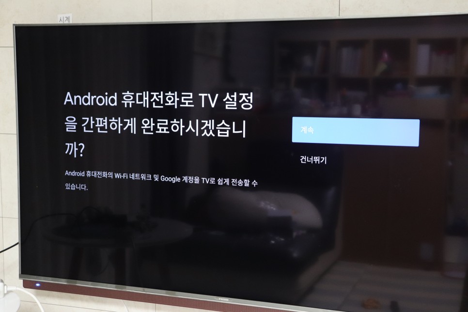 시스템 업데이트 인스톨을 기다리면 드디어 Android tv라서 이제 본격적으로 계정을 연결하여 설정을 하는데 거의 다 했으니 열심히 하세요. 🙂