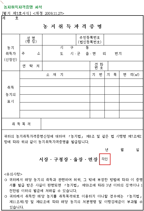 농지취득자격증명방법및과정확인