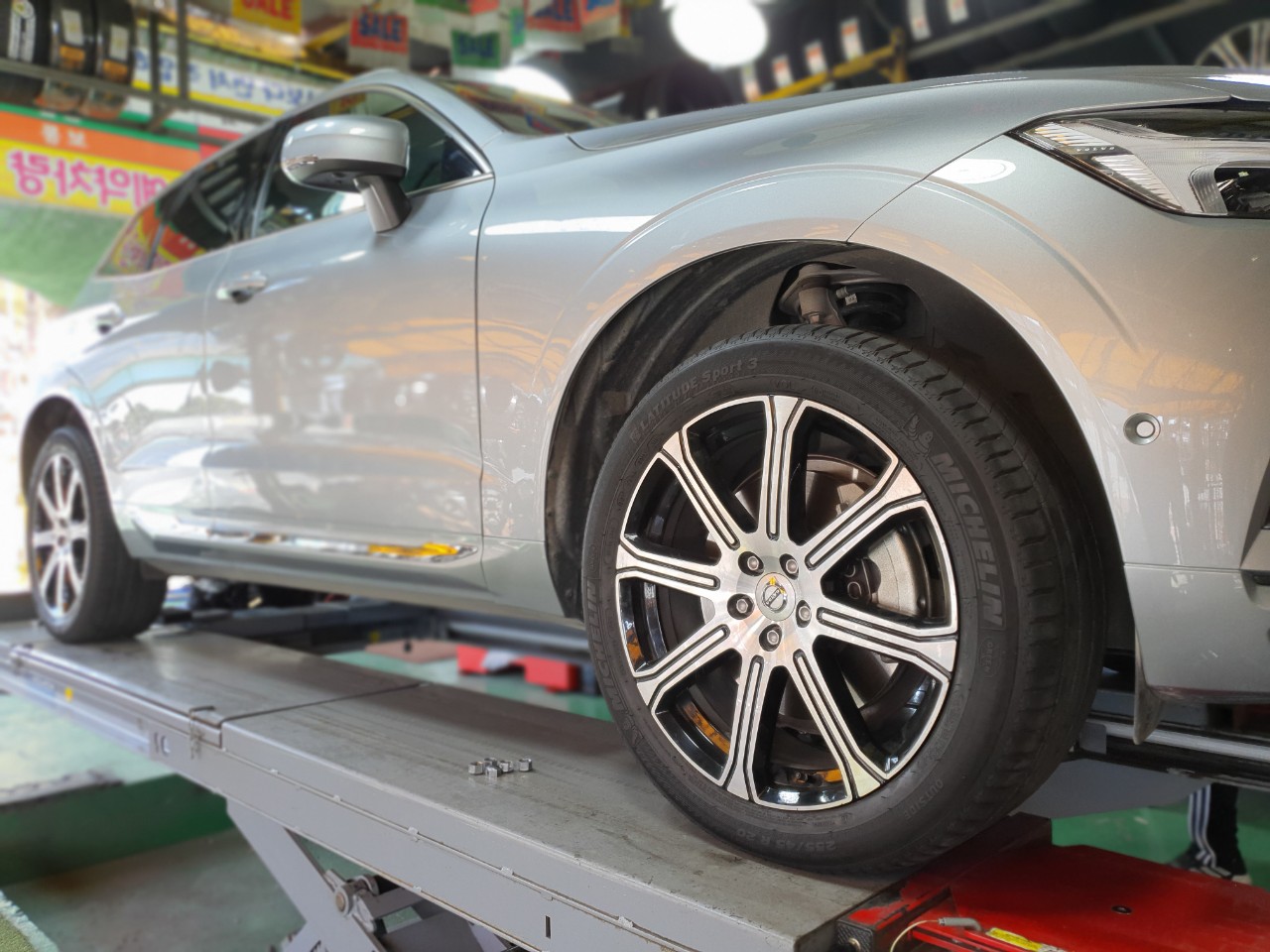 타이어는 마모 한계선까지 사용돼 전면 타이어의 이상 마모가 진행돼 타이어 교체 후 휠 얼라인먼트 조정이 필요한 상태였습니다.사용하시는 휠타이어 전용타이어 탈부착기로 타이어 탈부착 해드릴게요~