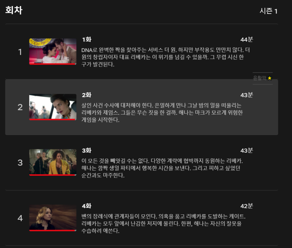 이처럼 리베카를 중심으로 서비스를 이용한 두 커플의 이야기가 진행되는 가운데 사망 시점으로부터 1년이 지난 익사한 시신이 1구 발견된다.