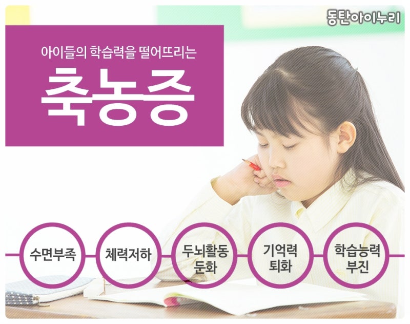 감기약을 먹어도 잘 낫지 않고 노란 콧물이 계속되며 심한 구취가 나고 광대 부위 통증, 감기가 심해 기침이 3일 이상 지속될 경우 축농증을 의심해볼 수 있었습니다. 아이들은 부비강의 크기가 작고 호흡기 점막이 약하며 면역력이 충분히 발달하지 않아 축농증에 취약했습니다. 축농증은 코막힘과 녹색이나 노란색의 끈끈한 콧물이 특징인데, 만성의 경우 코막힘 콧물이 나오지 않고 뒤로 코막힘이 옮겨가기도 했습니다.
