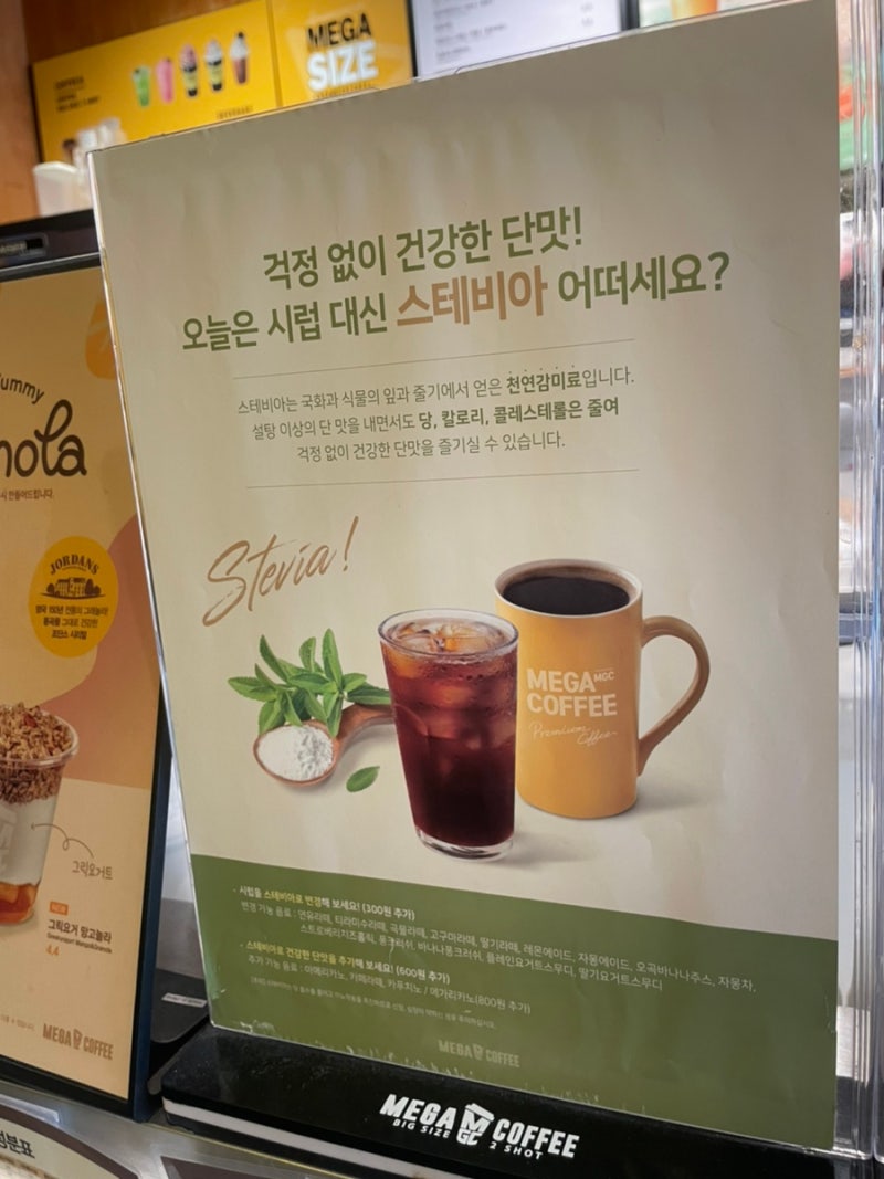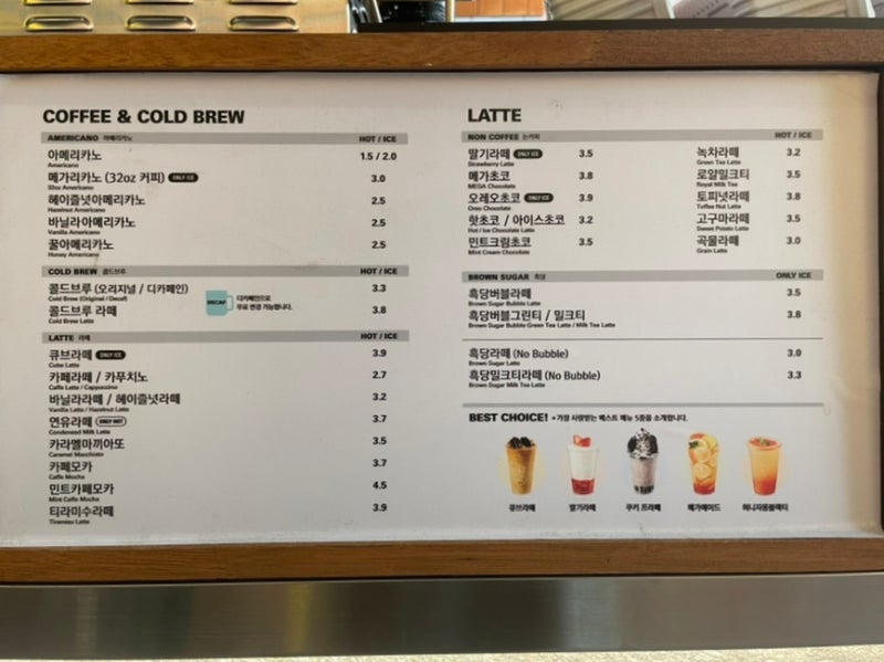 메가커피 메뉴, 메가커피 메뉴의 가격도 메가커피 메뉴에 적혀 있어 한층 보기 쉬웠습니다.