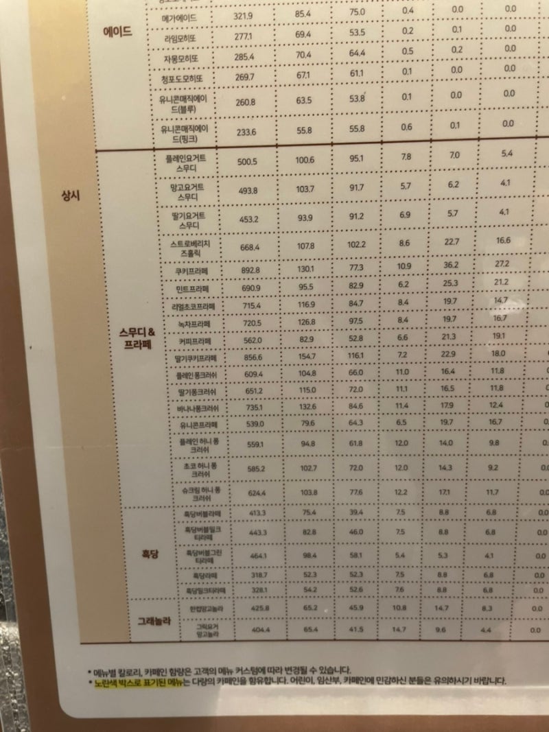 메가커피 메뉴 신메뉴가 포함되지 않은 메가커피 메뉴입니다.예전에 커피를 마셨을 때 맛이 없었던 기억이 있고 메가 커피 메뉴 추천에는 에이드 종류가 적합할 것 같습니다.
