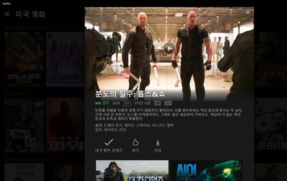 4. ‘와일드 스피드: 홉스&쇼’ 누르면 썸네일 하단에 저장 버튼이 보이시죠?