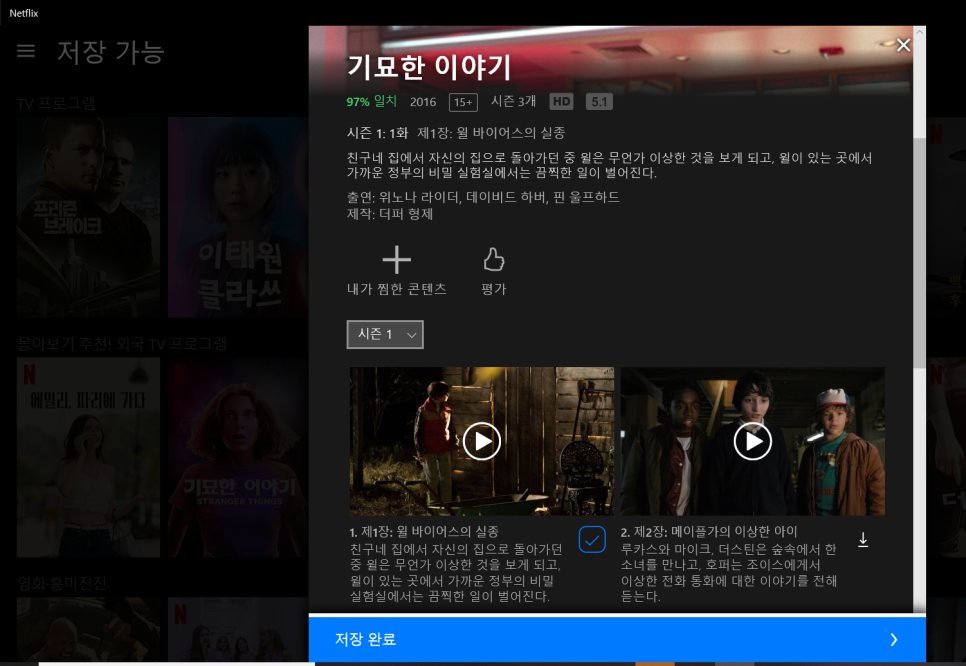 아, 그리고 영상을 저장할 때 ‘스마트 저장 활성화’ 버튼이 있는데 스마트 저장은 저장한 에피소드 시청을 완료하면 자동으로 해당 에피소드가 삭제되고 다음 에피소드가 저장되는 기능입니다. 드라마 등 시리즈 영상을 시청할 때 이 기능을 켜두면 용량도 절약할 수 있고, 매번 에피소드를 내려받는 수고를 덜 수 있습니다.