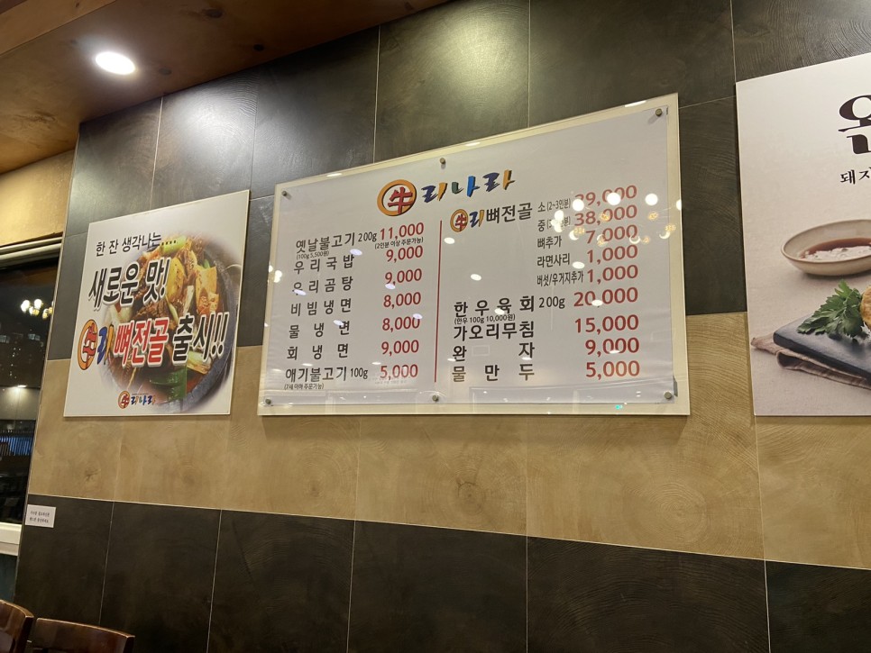 배우 정호영의 아버지네 집인 한국 별내점의 메뉴와 가격 쇠고기를 취급하는 가게인 만큼 불고기, 등뼈전골, 국밥, 곰탕, 냉면, 육회 등이 있다.