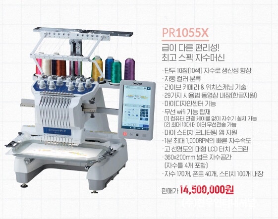 PR1055X는 10바늘 자수기로 레벨이 다른 편의성과 최고 스펙 자수 머신입니다!