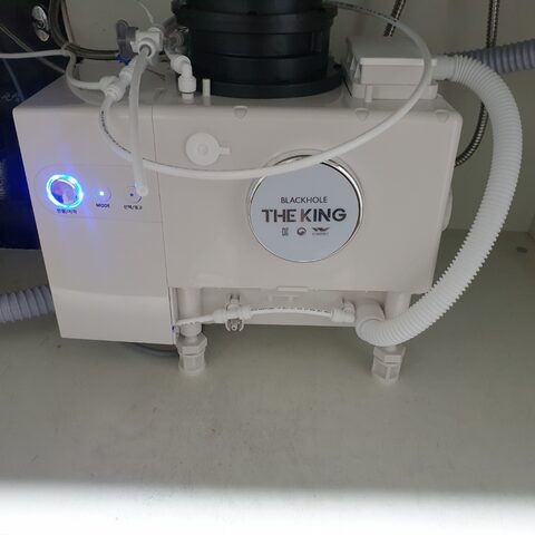 이부분이 기존에 있던 하수구통?을 분리하여 설치되는 부분이라 여기가 분쇄실처럼 체결방식이라 싱크대 구멍뚫지 않아도 되니 이중비용을 줄이고~ 전세도 편하게 사용하고 이사할때는 이전 설치하시면 되므로 설치형이지만 가벼운 마음으로 설치하실 수 있었다!!
