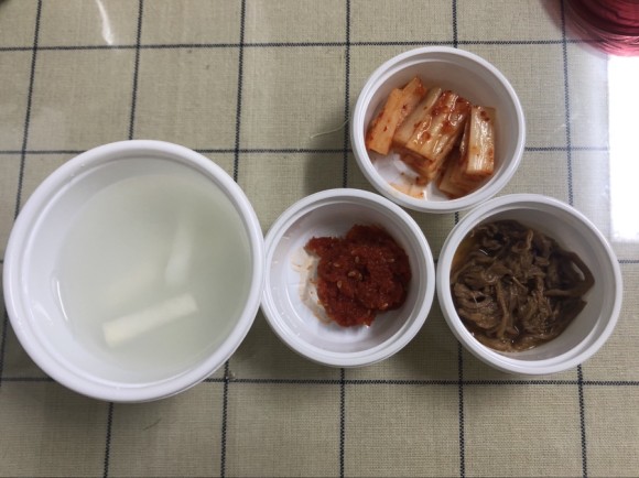 동치미, 김치, 고기 간장 조림, 그리고 알 수 없는 그 빨간 양념은 입맛이 없는 저의 꽃게살 같은 반찬이었습니다. ㅎㅎㅎ