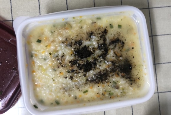 매운 것도, 자극적인 것도 매워서 제일 기본죽인 다섯 가지 야채죽으로 쌌어요8천원입니다!