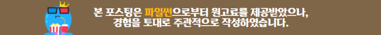 여러 가지가 있지만 ‘파일상’이 메인이다. 여기 처음 사용할 경우 ‘쿠폰’을 등록하면 10,000원을 받을 수 있다. 나처럼 의심이 많은 사람도 이용하다 보면 무장해제 됐다. 그곳에 참석하는 것만으로 얻을 수 있는 소소한 포인트도 모아보면 여러 편을 볼 수 있을 만큼 넉넉한 편이라 추천한다. 소개한 것 외에도 다양한 프로모션이 있으니 파일썬을 방문해 보세요.