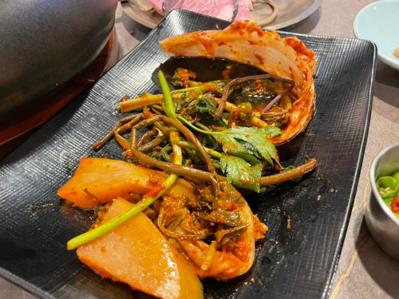 미나리무침도 먹어봤는데 삼겹살이랑 너무 잘 어울려요.다람이는 상추가 없어서 처음에는 보글보글했는데 많은 김치와 함께 먹다 보면 상추가 전혀 생각나지 않아요.^^