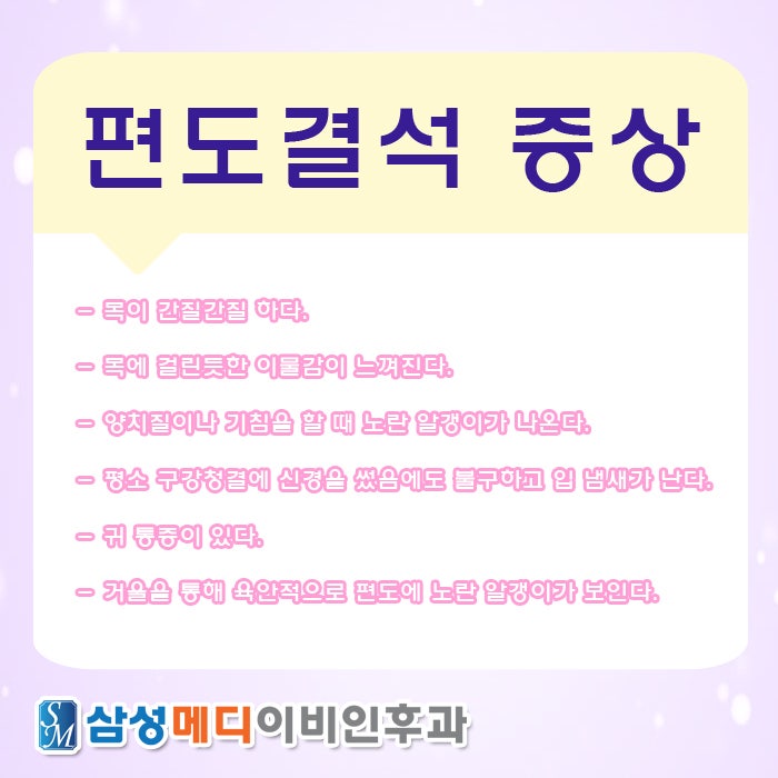 편도는 입 안에 있는 목구멍에 퍼져 있는 조직으로 외부에서 침입한 바이러스나 이물질을 제거하는 역할을 합니다. 이 기관의 표면에는 셀 수 없이 많은 구멍이 존재하는데 여기 음식 찌꺼기나 세균이 결합된 덩어리가 편도선에 쌓였을 때 그것을 송파 편도결석이라고 정의합니다. 이 질병들은 주로 비염이나 축농증이 있는 사람들에게 자주 일어납니다. 콧물을 기도를 통해 흘릴 때 세균이 번식하기 쉬운 환경이 조성되기 때문입니다. 그 밖에도 만성 편도염 환자들도 주요 희생양이 되기도 합니다. 염증으로 부어 있던 편도가 붓고 완화되기를 반복하면 표면 뼈의 크기가 점점 커져 이물질이나 세균이 침입하기 쉬운 상태가 되기 때문입니다. 따라서 이러한 증상을 앓고 있는 사람이라면 주의할 필요가 있습니다.