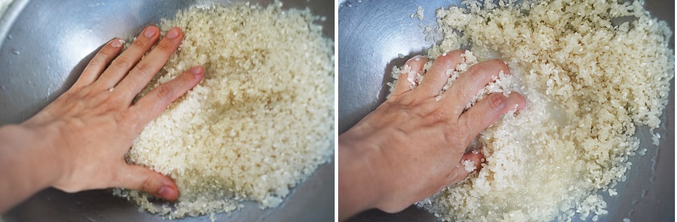 쌀 씻는 법 알려드릴게요.흐르는 물에 한 번 헹군 후 물기가 없는 상태에서 손을 잡고 쌀을 박박 문지르세요.그리고 물을 넣고 헹군 다음 3회 정도 쌀을 씻으십시오.너무 많이 씻어도 영양소가 없어진다고 하니 2~3번만 씻으세요.