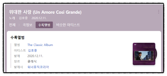 김호준 더 클래식 앨범 수록곡 [위대한 사랑]정보