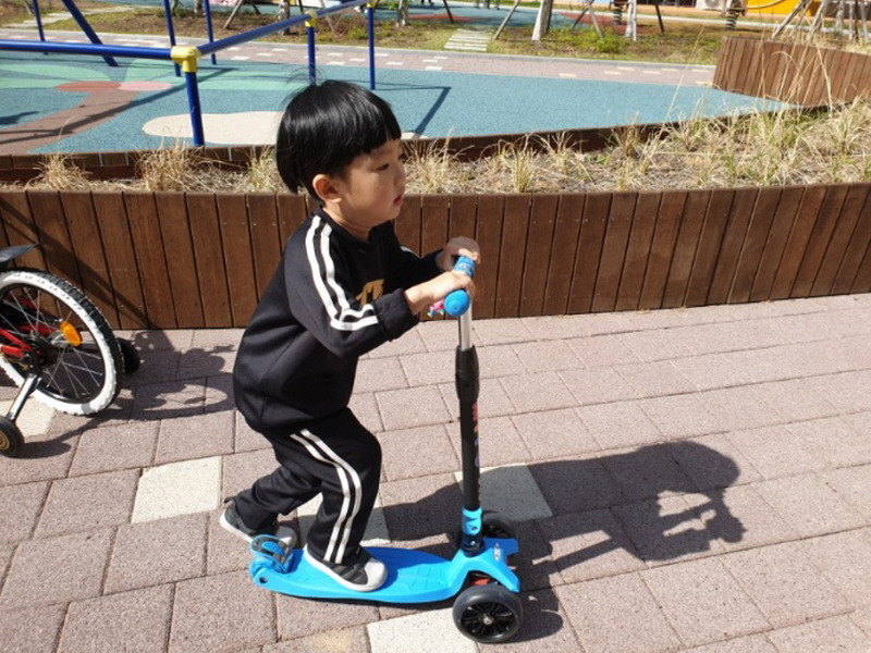 이렇게 화창한 날씨 속에서 아이들과 함께 타고 있는 우리 딸의 뒷모습이지만 지지하중이 최대 60kg까지 보장된다는 점에서 안전하고, 유로피언 CE, KC 인증을 받아 안심하고 탈 수 있다는 점에서 만족하게 되었습니다.이처럼 최고급 베어링이 장착돼 있다는 점에서 주행하는데 편안하고 안전성이 뛰어나다는 점에서 안심하고 우리 딸이 돌아다니며 놀 수 있고 무게중심이 탄탄해 아이의 신체 균형과 균형감각을 키울 수 있어 좋았습니다.#어린이 퀵보드그리고 원터치 접이식으로 편리하게 접을 수 있다는 점에서 만족스럽지만 야간에는 눈에 가장 많이 달리는 LED 발광바퀴를 통해 안전하게 돌아다닐 수 있어 바퀴가 구르는 방향이 더욱 조여지는 방향이 되도록 나사의 풀림이 방지됩니다.그리고 충돌에 대비해 항상 헤드를 끼울 수 있다는 점에서 완충효과를 누릴 수 있었고, 아이가 사고 시 심하게 다치는 것을 방지하는 역할로서 만족스럽다고 느끼게 되었는데, 아이의 안전을 보장받는다는 점에서 좋았습니다.어린이 퀵보드에는 앞에 헤드가 있느냐 없느냐의 차이가 매우 큰 것으로 확인되었는데 헤드가 있으면 충돌할 경우 양쪽 손잡이를 잡고 있는 손을 보호할 수 있고 충격에 대비해 흡수가 가능하여 큰 사고 예방에 항상 좋다고 생각했습니다.이처럼 헤드는 아이의 퀵보드에 언제든지 쉽게 탈착할 수 있다는 점에서 어렵지 않고, 높이 조절을 통해 아이가 유아부터 아이까지 성장하는 동안에도 언제든지 이용할 수 있어 만족스러운 주행을 기대할 수 있게 됐습니다.이러한 어린이 퀵보드는 3단 원터치 높이 조절이 가능하였으나 최고 900mm 높이까지 가능하다는 점에서 안전하고 편리한 원터치 높이 조절 밸브를 사용하여 3단 높이 조절을 하게 되었고, 높이 조절 고정핀을 이용하여 높이 조절 밸브를 그대로 돌리면서 사용하게 됩니다.