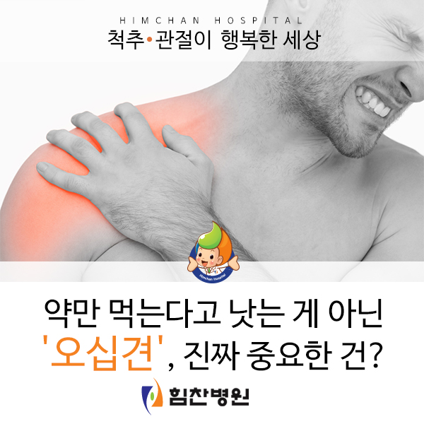또한 넓은 운동범위를 유지하기 위해 여러 구조물이 복잡한 구조로 연결되어 있는 것이 특징인데, 이러한 특징은 곧바로 어깨 관절의 불안정성으로 이어져 일상생활 중 특별한 운동을 하지 않아도 다치거나 높은 질환 발병 위험으로 이어지는 결과를 가져옵니다.따라서 무엇보다 어깨관절의 건강관리에 특히 신경을 쓰시는 것이 중요한데, 여러 증상 중에서도 특히 지금 어깨통증에 시달리는 하루하루를 보내고 계신 분이 있다면 어깨관절질환 중 가장 일반적으로 알려진 오십견에 대해 알아두시길 권장드리며 오십견에서 빨리 벗어나는데 도움이 되는 핵심 키워드는 무엇인지 알아보시길 권해 드립니다.
