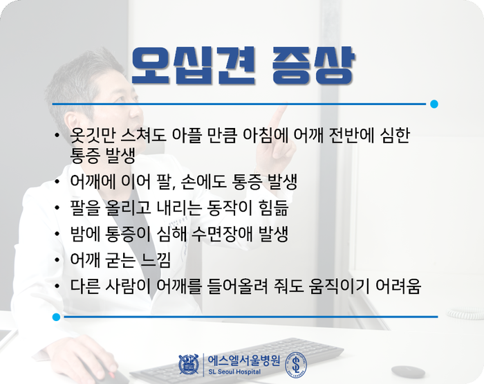 주로 50대에서 발병률이 높아 오십견이라고 불리는데, 최근 PC나 스마트폰 사용으로 인해 20~30대 젊은 환자도 늘어나면서 이십견, 삼십견이라는 신조어까지 등장하고 있습니다.
