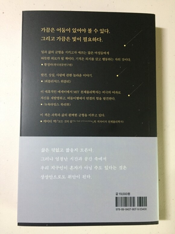 이 책을 읽어보고 싶었던 이유는 한때 천문학과를 꿈꿨던 별을 좋아하는 나에게 제목부터 흥미로웠다.’우주에서 가장 영향력 있는 25인’으로 선정된 천체물리학자 작가가 쓴 책이라는 점도 호기심을 충분히 사로잡았다.