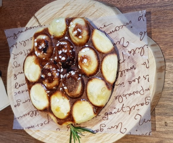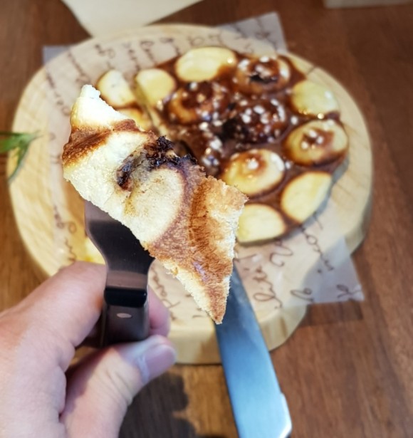 제주도라서 오름 형태로 와플을 구웠다고 사장님께서 말씀하시네제주도는 와플도 오름이야~~ 오름 안에 초콜릿이 들어있지? 그럼 제가 한번 먹어볼게요.