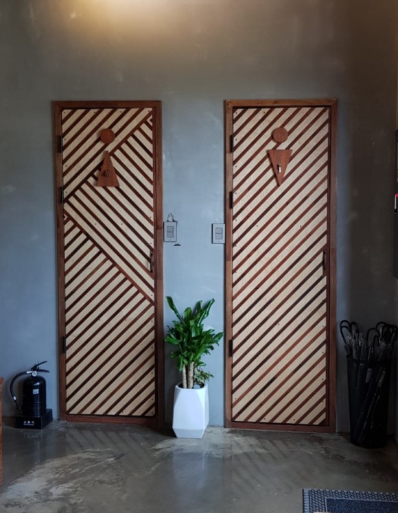 특이하게 생긴 문이 두 개 있는지 곰곰이 살펴보고 생각해보니 이게 화장실 문이다정말 아이디어가…나뭇결무늬만으로 인테리어를.. 실로 독특한 인테리어.. 하나하나가 주인의 센스가 돋보이는