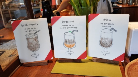 조금만 기다려봐 낮~ 어차피 이번 여행의 콘셉트는 여유만만한 힐링 아니야?카운터에 앉아 있는 건 뭐야?카페 낭낭 시그니처일까?1번 선수, 콜드브루 아메리카노 2번 선수, 귤비앙코라떼 3번 선수, 난치노 뭔가 위에 세 개가 메인 같은 느낌적인 느낌이다세 가지 중 하나는 반드시 주문해야 한다.커피 무식자인데 오늘은 커피가 땡기는…