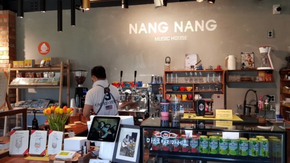 저기 보이는 분이 가수 해바라기 멤버인가?사장님인가? 직원분인가?안에는 손님과 점원 한 명만 보이는데?사장님? 직원분? 뭔가 혼자 정신없어.바빠 보여서 말 걸기가 미안할 정도로 열과 성을 다해 커피를 만들고 있는