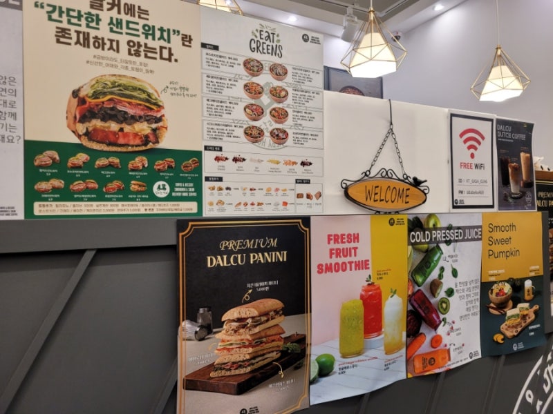 매장 밖에 샌드위치&토스트&샌드위치 메뉴와 가격이 이미지적으로 나와있으니 미리 선택해서 매장에 들어가셔도 됩니다.달리는 커피 전매특허 굵기 샌드위치, 그리고 미니파니니를 연상시키는 그릴 토스트까지!
