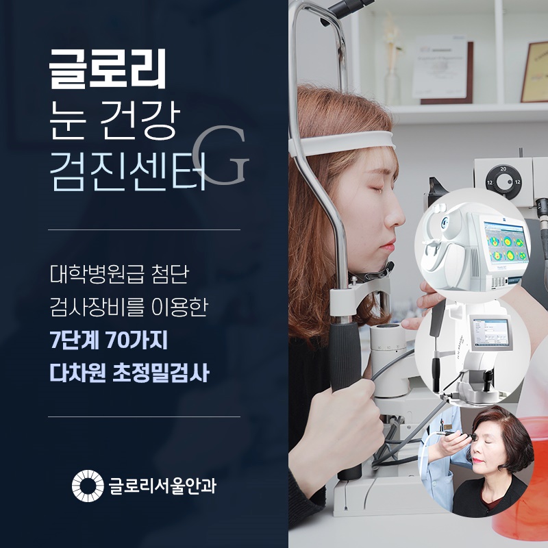 또한 눈건강검진센터에서는 7단계의 70여가지 정밀검사 외에도 연령대별 검사와 크고 작은 증상별 검사, 수술 후 검사까지 체계적으로 지원하고 있으며 대학병원급 첨단 장비를 사용하여 검사의 안정성, 정확성을 높이고 있었습니다.백내장의 경우 노화 외에도 눈의 외상이나 당뇨, 고혈압 등의 전신질환, 스테로이드 약물, 자외선, 유전 등 다양한 원인에 의하여 발생할 수 있으므로 연령에 관계없이 눈 건강에 관심을 가지고 관리하여 주십시오.또한 주기적으로 안과 검진을 통해 이상 유무를 확인하세요.