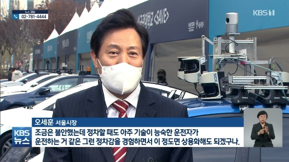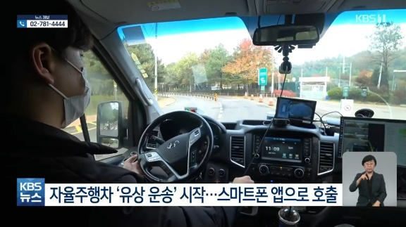 출처 : KBS 9시 뉴스운행구간은 DMC역과 인근의 아파트 단지, 사무지역입니다.자율주행차에 3대가 투입됩니다.승객은 탭(TAP!)이라는 자동운전차 앱으로 호출합니다.어느 위치에서 부르는 것이 아니라 지정된 정류장에서만 가능합니다.이른바 구간 택시라고 하는 것입니다.