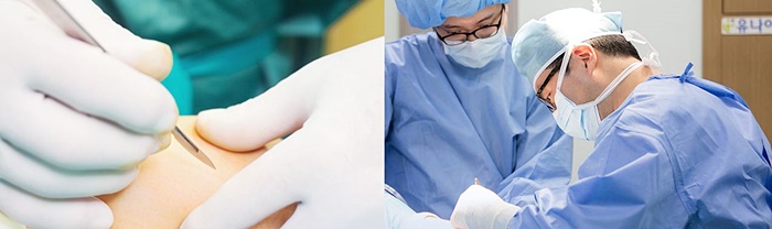 간단한 것도 있고, 절개부가 크지 않기 때문에 통증이 적고, 상처는 크지 않다는 장점이 있습니다.