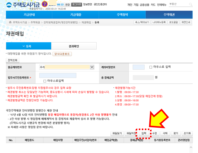 안녕하세요 지존입니다.얼마 전 경매에서 낙찰받은 토지의 소유권 이전 등기촉탁을 하면서 인터넷을 통해 국민주택채권을 구입했습니다. 은행을 방문하지 않고 인터넷을 통해 국민주택채권을 매입하는 방법에 대해 적어보려고 합니다. 전에도 한번 올렸었는데 사이트가 많이 바뀌었네요. https://blog.naver.com/sangtann/221329421551