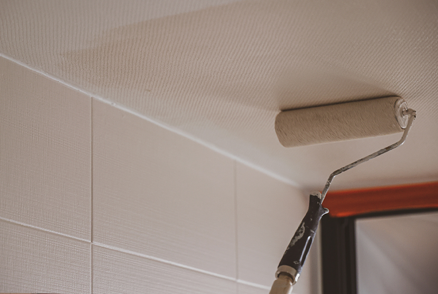 벽타일 보수 샤워실 천장 페인트, 내친김에 세면대가 있는 천장도 페인트칠했다.혼자 남기기에는 너무 지저분한 것이 눈에 띄었다.