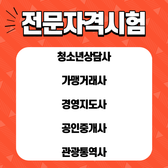 청소년 상담사, 가맹거래사, 경영지도사, 공인중개사, 관광통역사 등