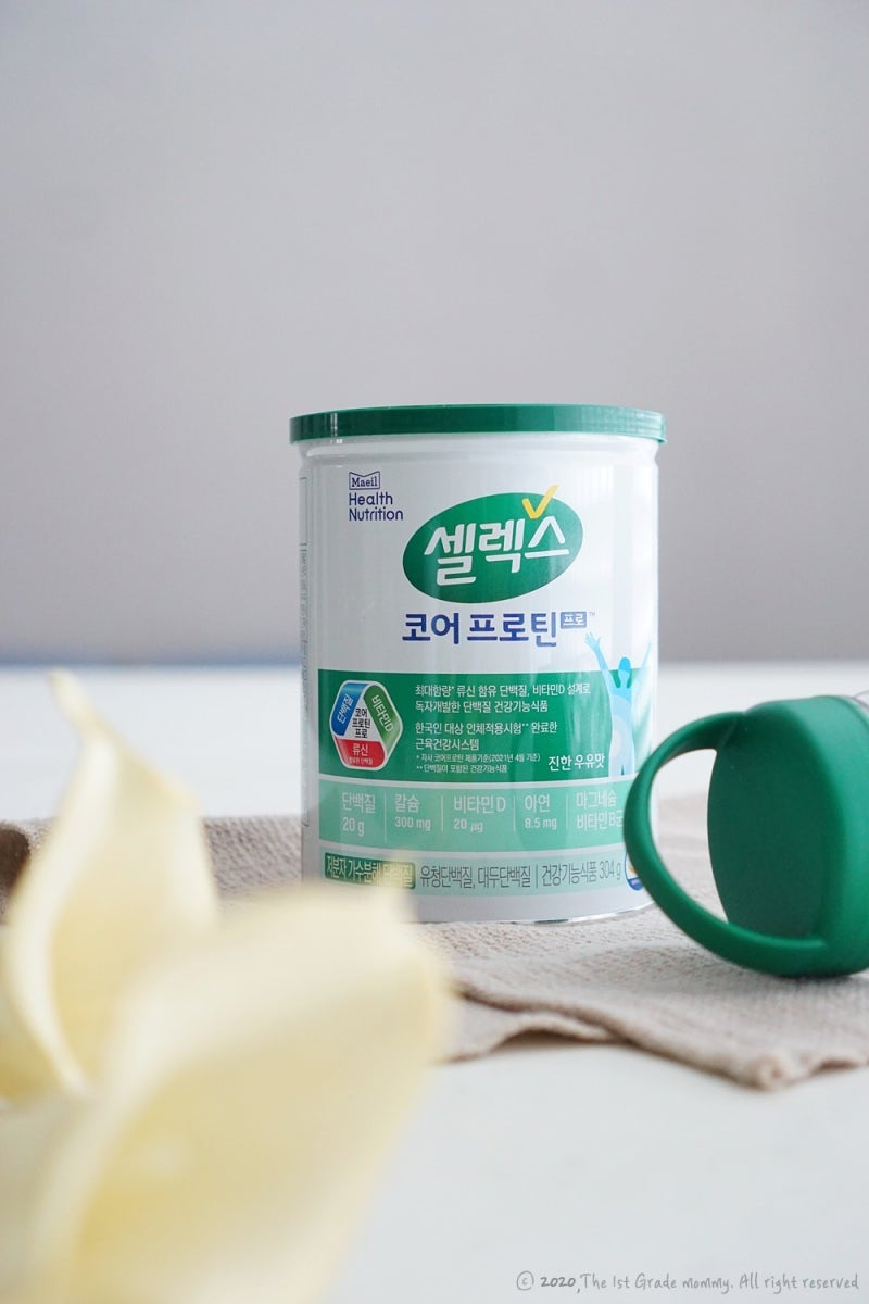 또 9가지 필수 아미노산이 모두 들어 있는 것은 물론 아미노산 스코어는 무려 110점! 이제 셀렉스코어 프로틴 프로를 준비하려고 했습니다.한국인 대상 인체적용시험을 완료한 제품이라니 얼마 전부터 저희 가족과 함께 시작했는데요.저희 가족은 유당 분해 능력이 낮아서인지 그동안 우유를 마셔서 불편한 상황이 생길 때도 있었지만 유당도 우유의 1/20 정도여서 부담없이 섭취할 수 있다는 점도 마음에 들었습니다.