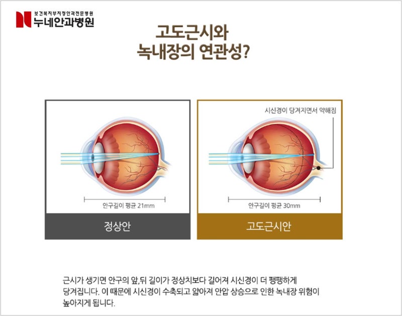 녹내장은 시신경이 점차 약해지면서 손상이 발생하는 진행성 시신경병증 중 하나입니다. 대한민국의 대표적인 3대 실명 질환에 속해 있고 실제로 실명 환자 비율 중 녹내장으로 인한 실명 비율이 높을수록 고위험군 질환이기 때문에 많은 분들이 두려워하는 증상이기도 합니다. 녹내장 하면 흔히 생각나는 증상이 안압이 높아지는데요. 보통 21㎜Hg 이상 안압의 경우 녹내장 위험이 높은 것으로 알려져 있는데 실제로 우리나라에서 안압이 높아지면서 발생하는 일명 원발개방각 녹내장 유병률은 현저히 낮은 것으로 알려져 있습니다.