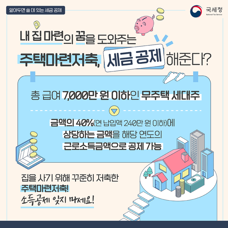 자기 집을 소유하고 싶다는 이유만으로 하루 종일 열심히 일하는 사람이 많다. 많은 사람이 매일 자신의 꿈을 위해 열심히 노력해도 과언이 아니다. 때문에 최대한 돈을 아끼기 위해 보험에 가입하고 주식투자로 수익을 얻을 수 있다. 또 근로자의 경우 경제적 소득이 투명하게 공개되기 때문에 온갖 세금을 내야 한다. 이에 정부는 이를 보완하기 위해 근로자의 근로 의욕을 높이기 위해 각종 세제 혜택을 주는 제도를 마련했다. 오늘은 이러한 제도 중 하나인 주택청약 연말정산에 대해 알아본다. 설명하기 전에 이 제도의 취지와 청약저축에 가입해야 하는 이유에 대해서 말씀드리겠습니다.