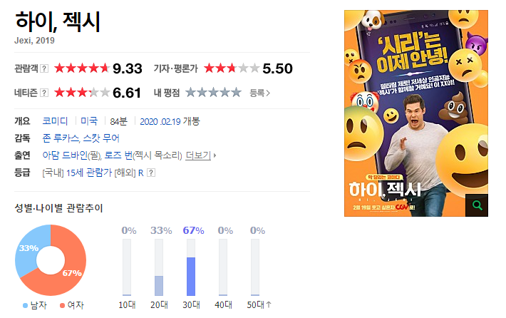 하이, 젝시>는 아마<19곤도>를 목표로 하고 있을 것입니다. 세상 물정을 모르는 사악한 남자, 즉 재활 프로젝트에 관한 코미디 영화인데, 이런 경우 성적 농담과 함께 남성 취향에 대한 선입견이 있다. 스마트폰은 누구에게나 적용되고 공감을 얻을 정도로 훌륭한데 코미디로 활용되는 과정에서 얼마나 좋은지 의문이 들어요. 맞아요, 외화에 대해서는 어떤 장면에서 그렇게 크게 웃었을 때가 신경이 쓰입니다. 제가 최선을 다하는 작품임이 명백해요. 생명을 지도하는 인공지능의 등장은 그리 새로운 것이 아니며 스마트폰과 결합하면 또 다른 문제다. 스마트폰의 노예가 된 것처럼, 자신의 삶을 되돌아 보면, 이 작품의 일부 장면에서는 확실히 소름이 끼칠 것입니다. 상당히 새롭지만 너무 간단하고 특별한 설명을 할 필요는 없습니다.