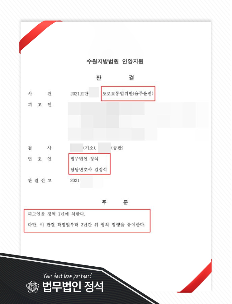 이렇게 반복되는 행위라면 사고를 내지 않고도 징역형의 실형이 선고될 확률이 매우 높고, 함부로 자신의 입장을 표명하기보다는 다수의 형사사건을 수임해온 법무법인 정석, 김종석, 안양음주운전변호사를 통해 적극적인 대처방법을 제시받는 것이 중요합니다.